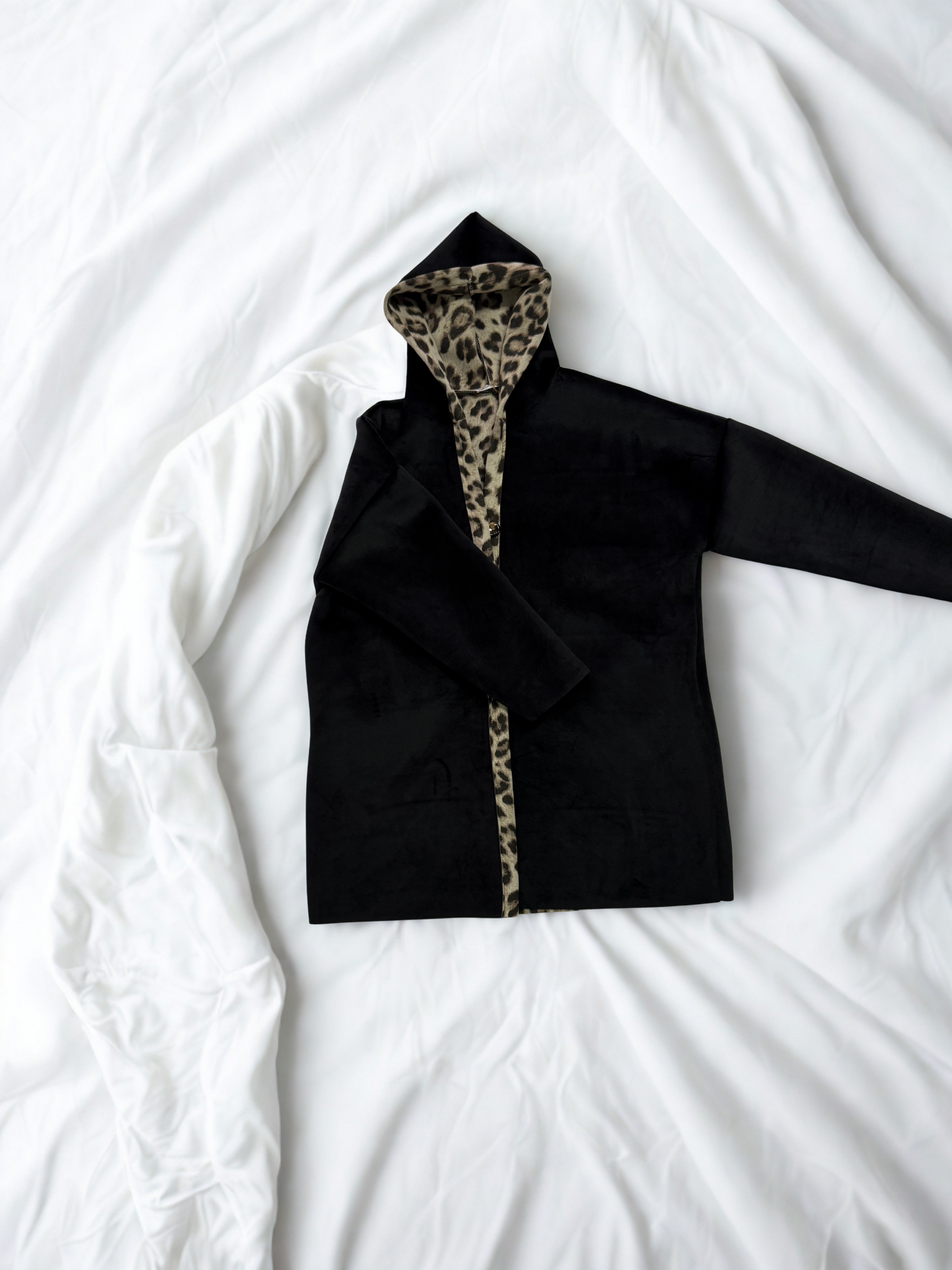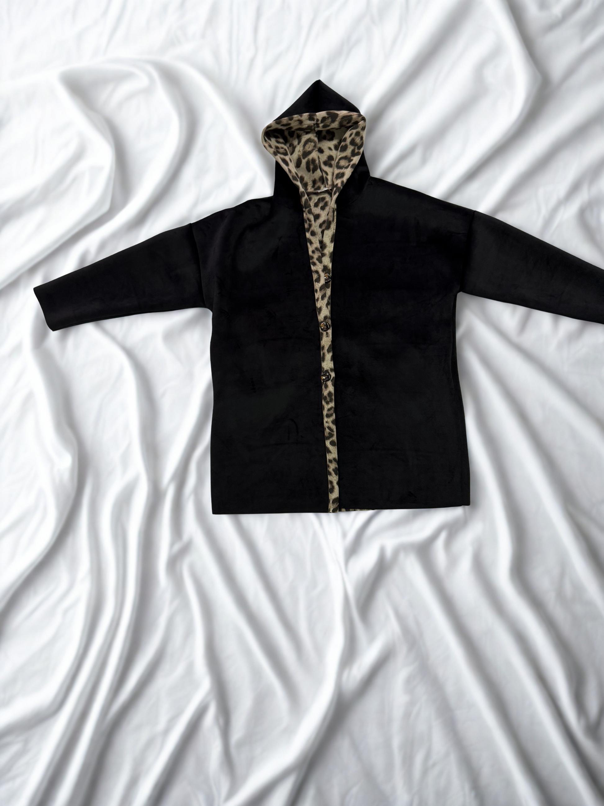 Prenda de neopreno elástica. La prenda tiene botones con capucha y bolsillos. Su estampación en la parte trasera hace de la prenda única .